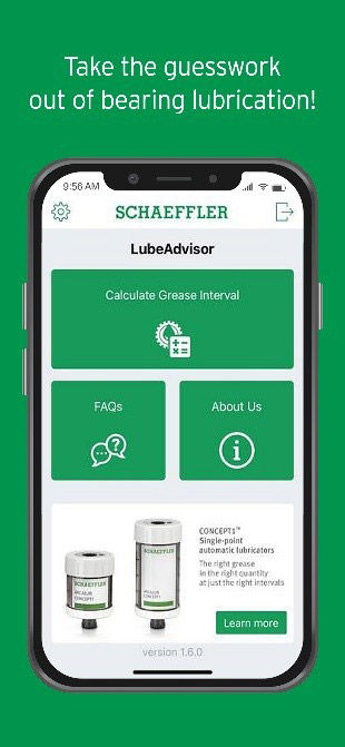 Developed by the engineering experts at Schaeffler, LubeAdvisor has been designed to take the guesswork out of bearing lubrication using the smartphone-based convenience customers have come to expect.