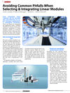 Linear modules are often integrated into larger machines or combined into systems such as pick-and-place Cartesian robots. One item often overlooked is the module connection and mounting. Depending on the supplier, some modules are designed to be mounted only by the base of the extrusion; if the mounting location on the machine doesn't allow for that, additional mounting brackets and other hardware may have to be purchased or machined from scratch, increasing costs and adding time to machine integration.