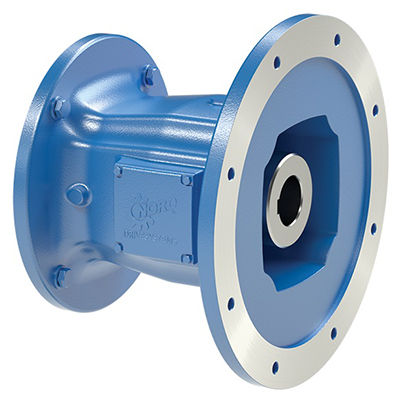 NORD’s redesigned NEMA and IEC adapters are made of cast-iron and consist of a single casting that eliminates the need for adapter plates. This manufacturing process reduces the total number of parts that need to be stocked, resulting in a lower sell price and providing better overall value. The improved housing also results in a significant reduction in heat generation, nearly -20 K less temperature rise compared to the legacy version. The adapters come standard with a fail-safe ROTEX coupling and are designed for easy integration of backstops and speed sensors to meet application needs. To support commissioning and service, an inspection cover was added for quick feedback on engagement and spider condition. Permalubricators and grease drain cups will no longer be needed as the new adapters come prepared with lifetime grease as well as provisions for re-greasing if necessary, adding to the low maintenance advantages these NEMA and IEC adapters provide.