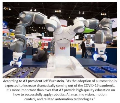 The Association for Advancing Automation (A3) has announced a lineup of five new virtual events taking place in the fall of 2020. As COVID-19 continues to make it difficult or impossible to hold large gatherings, A3 is transitioning the following 2020 in-person conferences to virtual events as well as adding two new events: