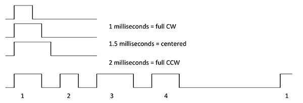 The small RC plane-type controllers are commonly a small brush motor with potentiometer feedback, although brushless motors with absolute feedback are available. These are usually limited to 1-2 millisecond PWM control. These compact actuators greatly gear down the motor, trading speed for higher torque. The small size can handle functions like eye and eyelid movement, small light props such as ears and tails. The DC brush motors tend to have a shorter life — from a few hundreds of hours, to a few thousands of hours for high-quality units. Brushless motors commonly go 10k to 20k hours at the low end to significantly more — the quality of any gear train starts to dominate the life expectancy at that point.