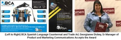 NTN, the parent company of BCA Bearings, is pleased to announce the award of a 2019 Automotive Communication Award by the Women in Auto Care. BCA received the award in the category of Media Outreach to Non-English Speaking Audiences for our Spanish language print ad campaign and our double-sided, bi-lingual (English/Spanish) point-of-sale countermat.