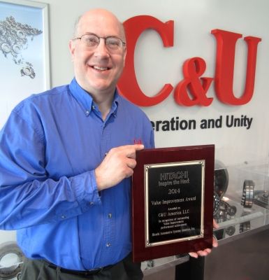 The North American subsidiary of The C&U Group recently received the 2014 Value Improvement Award from Hitachi Automotive Systems Americas, LLC. The award was presented in recognition of outstanding value improvement and performance achievement. Roy Isaacs, C&U Americas’ senior account manager accepted the award during the fourth Annual Hitachi Automotive Systems Supplier Conference.