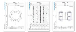Figure 4: Typical measuring reports for bearing rings.All these measurements can be performed on the shop floor. The measuring machines of the Klingelnberg P-Series are all equipped with temperature compensation by design as well as a temperature model to ensure accuracy in a production environment. In addition roller bearings and linear guides are used to ensure the high robustness compared to standard CMMs with air bearings and guides.