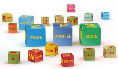 IBLOCK Visual Editor uses graphical blocks to represent motion commands control of the input/output devices, variables, logic expressions, math, loops and more without having to worry about complexities of the programming languages.