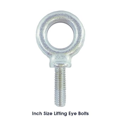 These eye bolts are offered in a thread range from 1Ž4-20 to 1-8, with stud lengths from 1 to 2.5 inches. They have a rated capacity of 500 to 9,000 pounds.