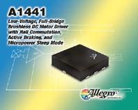 The new A1441 low voltage, full bridge brushless DC motor driver from Allegro Microsystems includes hall commutation, active breaking and micropower sleep mode.