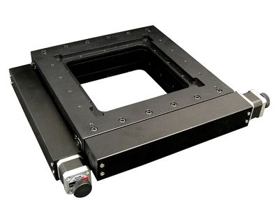 Preloaded V-groove and crossed roller bearings contribute to the high precision and stiffness of the AU200-100x100 Alignment Stages. The footprint of these low profile (80 mm) tables is 348 mm x 348 mm and they feature a large 188 mm x 188 mm open aperture. A precise pattern of threaded holes allows for the mounting of tooling and fixtures or an optional solid top plate. With easy access mounting holes, these XY stages are easily integrated into new or existing systems.