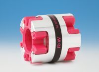 Servomax elastomer couplings from R+W feature a specially calibrated polyurethane insert, which is preloaded between precision machined driving jaws. In addition to their high torque density, low cost, and quick availability, they are used for vibration damping, shock absorption, and compensation for some small amounts of shaft misalignment. Occasionally, machine layouts and mounting arrangements simply do not allow for installers to achieve the alignment specifications of the standard series. This can cause stress to be transferred across the coupling and insert and onto adjacent shaft bearings, leading to premature wear. For these situations R+W is now offering the EKZ intermediate spacers, for use in high misalignment applications. Since parallel shaft misalignment is compensated for by an angular flex across each insert, the tolerance is actually increased by far more than double with the EKZ spacer, in some cases allowing for 4-5x more offset than with single insert designs. Even larger amounts of misalignment can be compensated for with a special convex tooth insert, which allows for additional rolling action as the coupling jaw pivots over the insert rather than causing it to flex. The standard EKZ product line ships from stock and is available in nine sizes, with torque ratings from 0.5 up to 2,150 Nm. They can fit any style of R+W Servomax elastomer jaw coupling of the corresponding size.