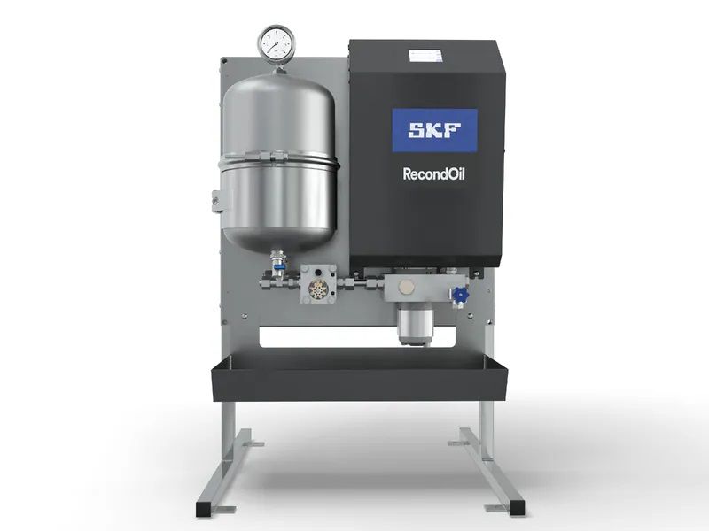 SKF’s RecondOil Box is an enhanced depth filtration system that incorporates RecondOil’s patented Double Separation Technology (DST) to regenerate used lubricants, reducing consumption and handling of the oil, while improving machine performance in the process.