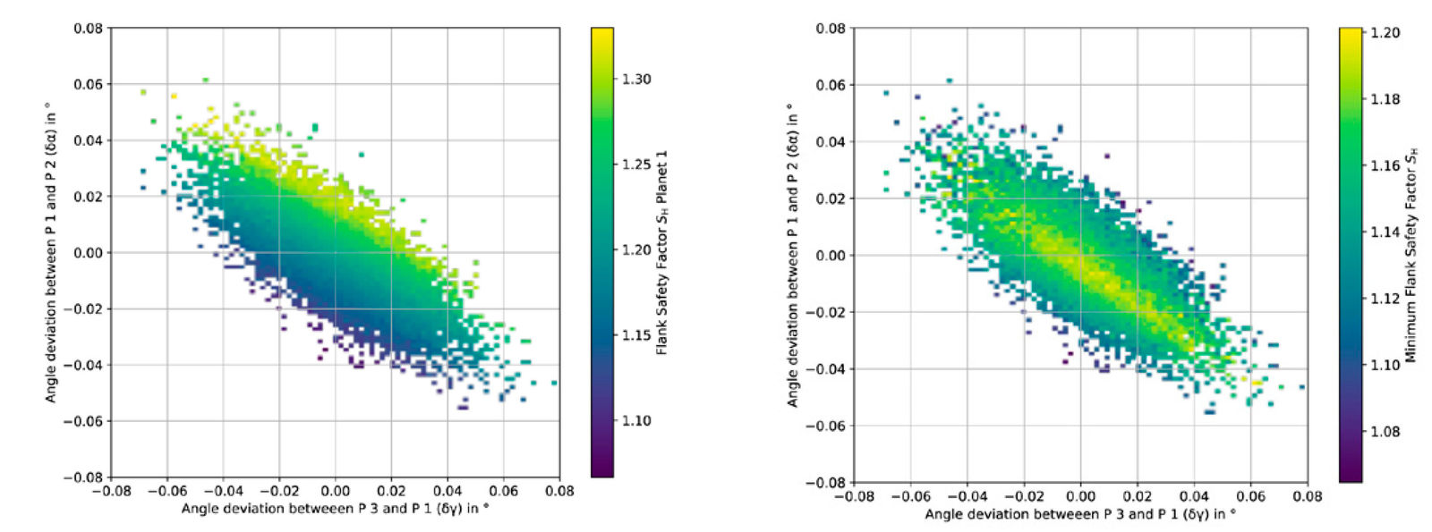 The results show that meaningful conclusions can only be made in an aggregated form. To do so, the minimum flank safeties of the planetary stage are plotted over the angle deviations. The results clearly show that optimal utilization is possible for gearboxes with small deviations. However, planet carriers with significantly larger manufacturing deviations can also be used if the backlash allows. These can be mounted and are functional, albeit with lower maximum torque.