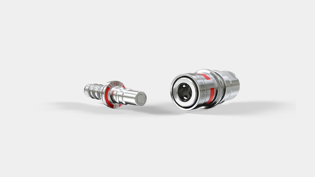 Stäubli's non-spill fluid connectors for datacenters are perfectly adapted to connect cold plates with manifolds in thermal management applications. This compact quick disconnect is perfectly integrated in installations such as data centers or super computers. Colored rings help to easily identify the input and the output circuits to ensure a reliable, sealed and secured connection between cooling circuits.
