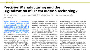 Linear guides, bushings, ball screws, stages, tables and motion control systems continue to evolve to meet the needs of factory automation, machine tools, and mechatronics. These components will continue to add sensors, electronics and software to meet new industrial requirements. We've spent time on the trade show circuit recently to report on new innovations in linear motion technology.