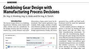 Loaded tooth contact analysis of gears, considering or neglecting gear misalignment, may be performed by gear design software such as KISSsoft or other similar tools. Approximately a dozen such commercial software programs are used in an international environment, most of them based on analytical approaches. Very few are based on FEM approaches.