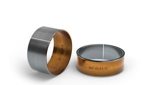 SKF has developed a composite bushing for motorcycle front suspensions (or forks) that reduces the need for maintenance. A combination of metals, plus a lubricating coating, gives the bushing both mechanical strength and low friction.