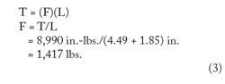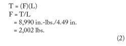 If all other factors remain the same, this increase in distance yields a decrease of nearly 600 pounds in the force on the torque arm.